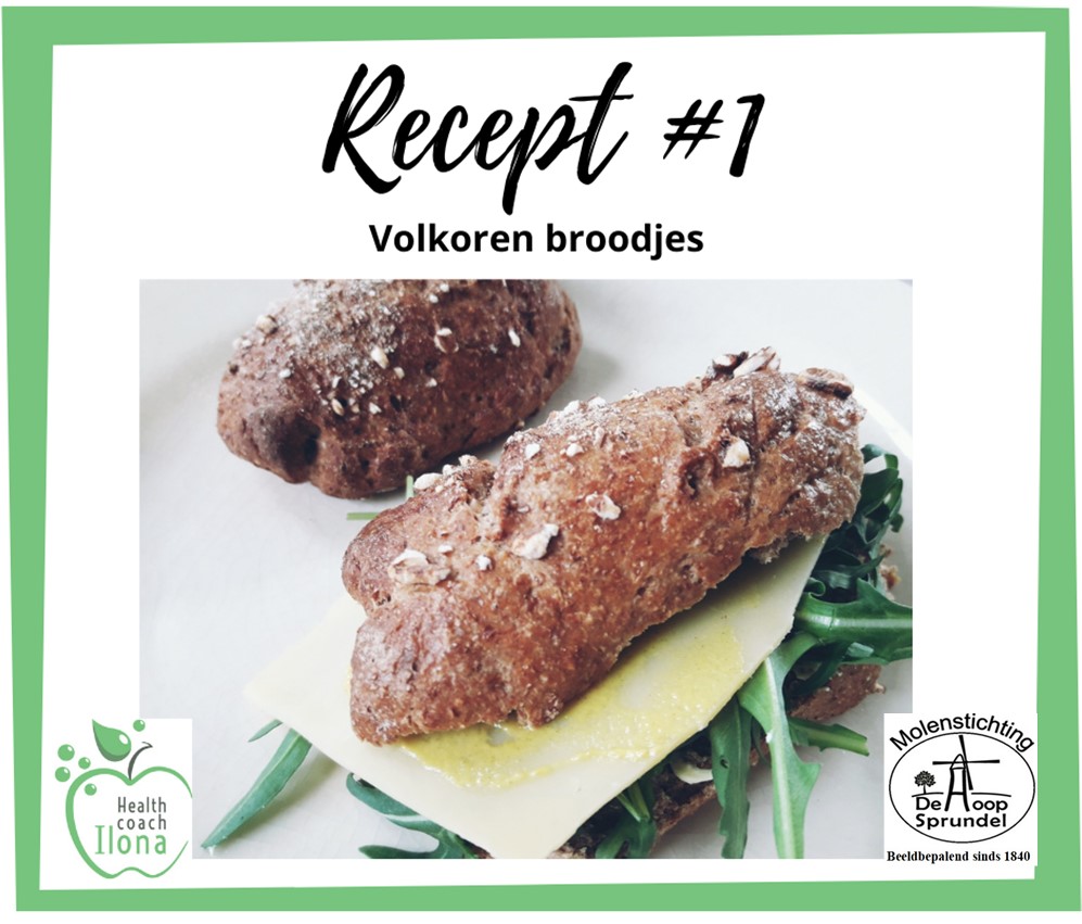 Ingrediënten: 400 gram volkoren meel van molen De Hoop, 100 gram bloem van molen de Hoop, 300 ml lauw water, 1 zakje gist, 15 gram olijfolie, 5 gram zout.