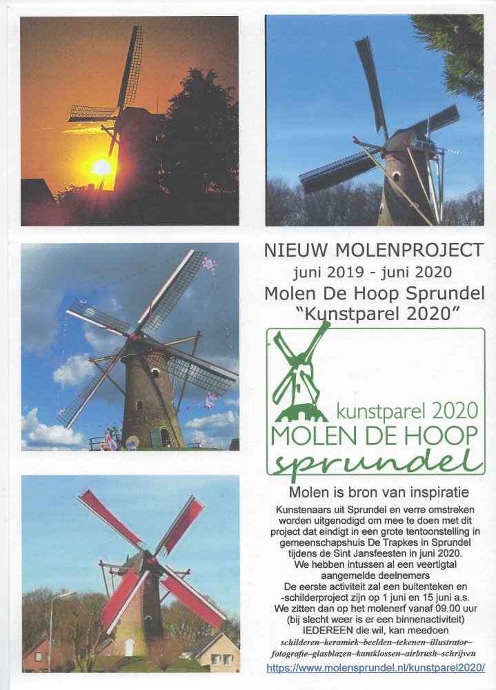 De komende maanden zullen in het teken staan van het organiseren van de grote expositie Molen “Kunstparel 2020” in Dorpshuis De Trapkes in Sprundel op zondag 28 juni 2020 tijdens de St. Jansfeesten.